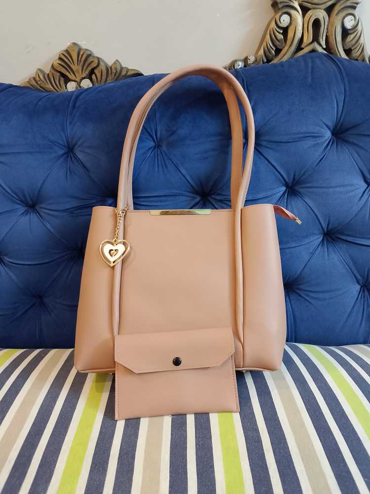 Elegant Peach Blossom Tote Set – 2-Piece Designer Shoulder Bag with Matching Accessory Pouch & Gold Heart Charm